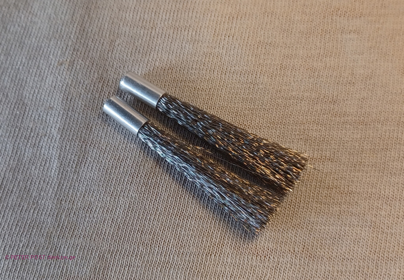 Einsätze, V2A Stahldraht Bürste, Ø: 4 mm, Inhalt: 2 Stück. Passend zu den Glasfaser- oder Messing-Radierstiften Art. Nr: 01405 und 01407.